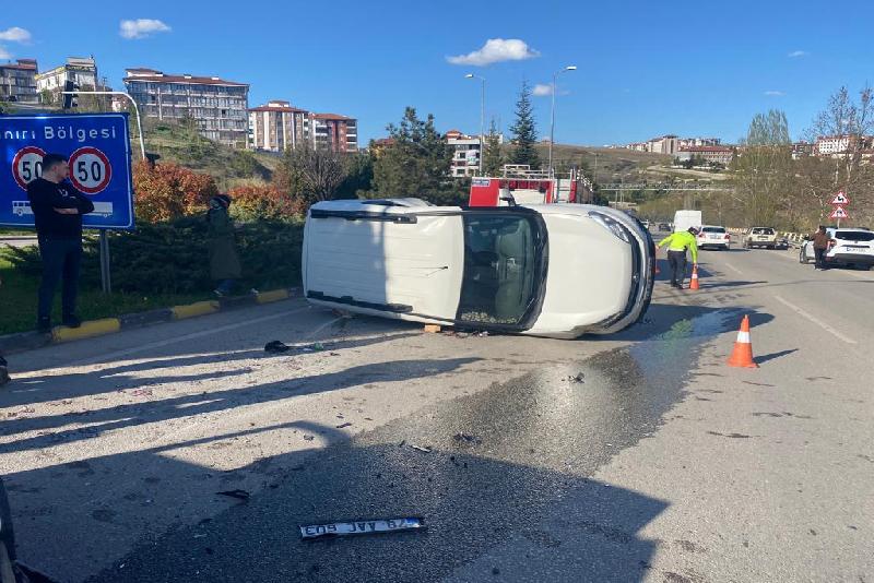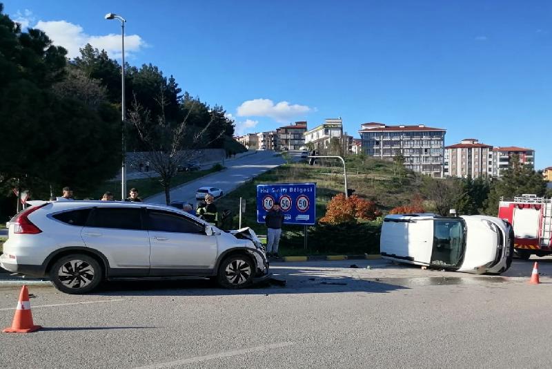 Çarpışmanın tesiriyle devrilen hafif ticari araçtaki şoför S.E. ile C.A. yaralandı.