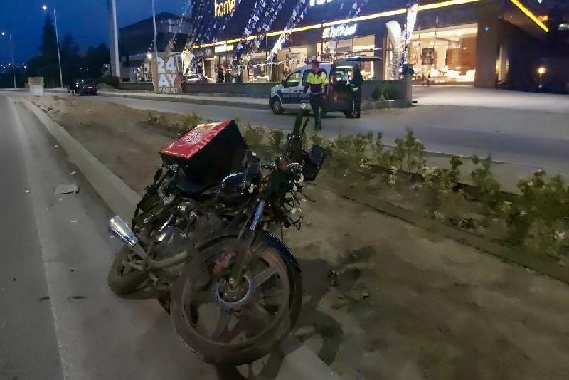 Çarpışmanın etkisiyle yere savrulan motosiklet sürücüsü yaralandı.
