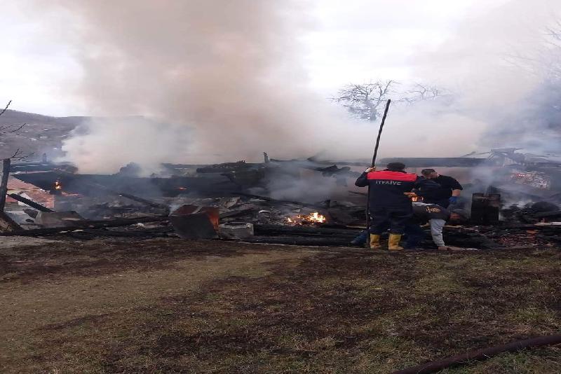 Ahşap mesken, yangın sonucu kullanılamaz hale geldi.