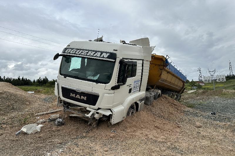 Eflani ilçesinden Ankara istikametine seyreden İbrahim Akgül idaresindeki cam madeni yüklü 06 GB 6699 plakalı tır, Bartın kavşağında kontrolden çıkarak yol kenarındaki toprak yığınlarına çarptı.