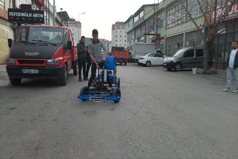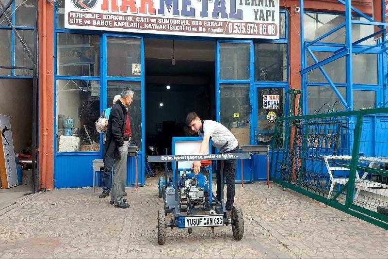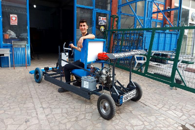 Karabük Üniversitesi TOBB Teknik Bilimler Meslek Yüksekokulu Kaynak Teknolojisi Programı 1. sınıf öğrencisi Yusuf Can Ünal, çalıştığı Bağ-Essan Sanayi Sitesi'nde demir profilden ve borudan araç tasarlamaya karar verdi.