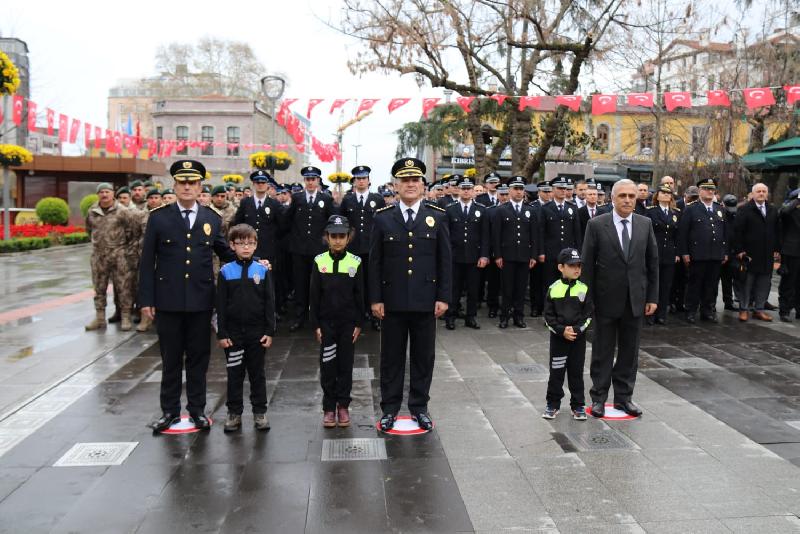 Meydan Parkı'nda düzenlenen merasimde, Vilayet Emniyet Müdürü Murat Esentürk, Trabzon Şehit Meriç Alemdar Polis Meslek Eğitim Merkezi Müdürü Doç. Dr. Taner Bora ile Emniyet Teşkilatı Görev Malulü ve Şehit Aileleri Yardımlaşma ve Dayanışma Derneği Trabzon Şube Lideri Ahmet Kumaş, Atatürk Anıtı'na çelenk sundu.