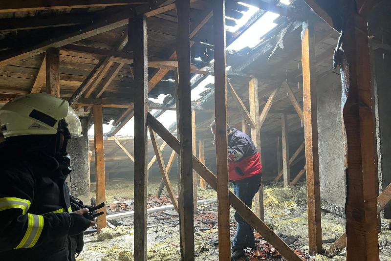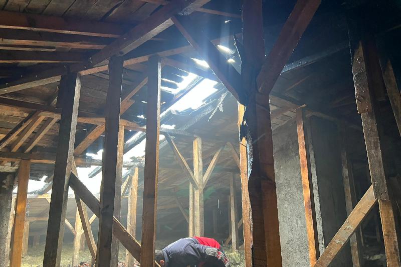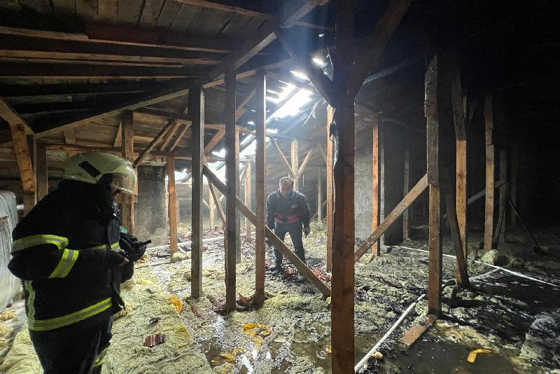 İlçe merkezindeki öğretmenevinin çatısında şimdi belirlenemeyen nedenle yangın çıktı.