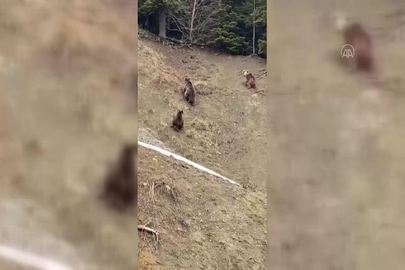 Cep telefonu ile ayıları görüntülediğini söz eden Özer, “Sesimi duyunca anne ayı bir müddet beni izledi. Daha sonra gözden kayboldular.” dedi.