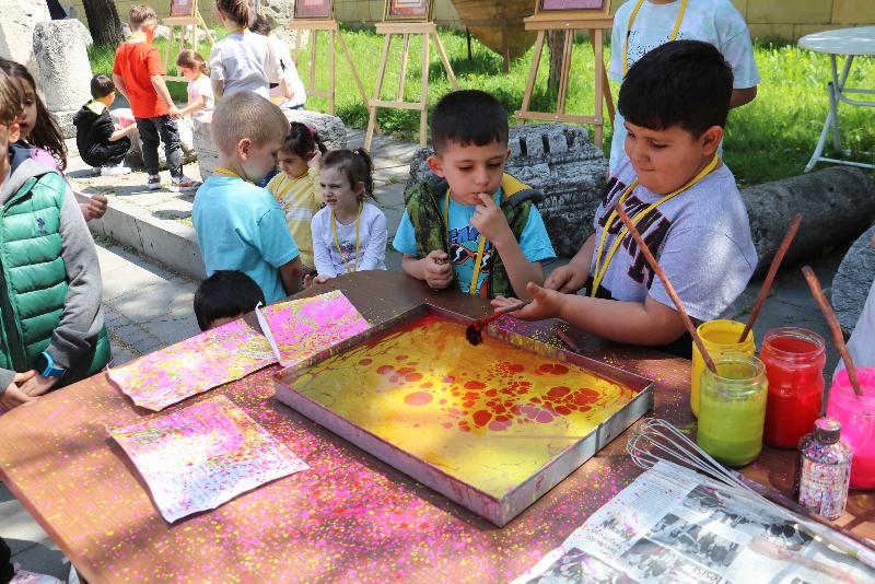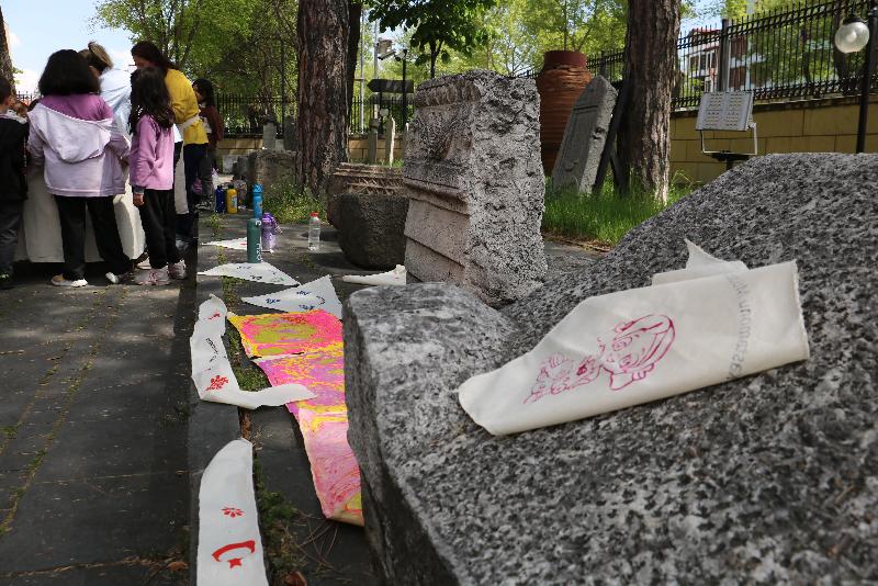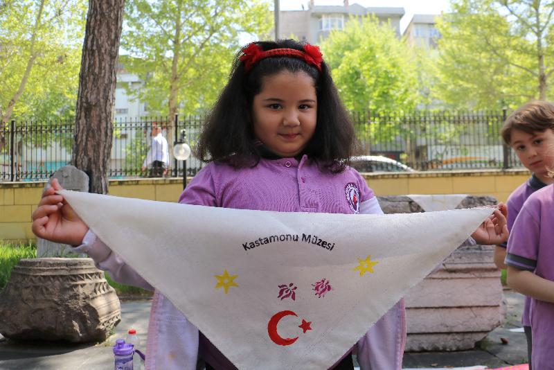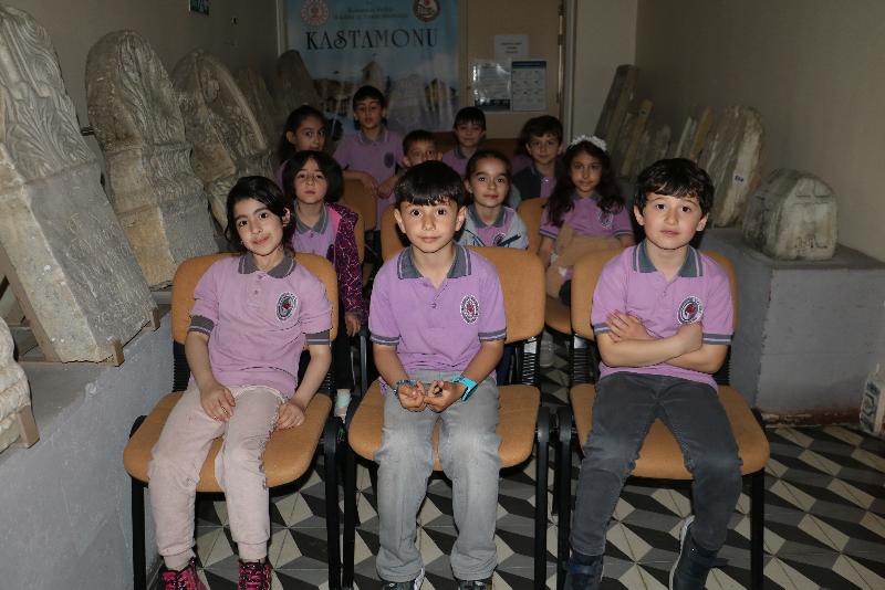 Öğretmenleri ve müze görevlileri gözetiminde Kastamonu Arkeoloji Müzesi'ni ziyaret eden öğrenciler, müze bahçesinde ebru, taş baskı ve deneysel kazı çalışmalarına katıldı.