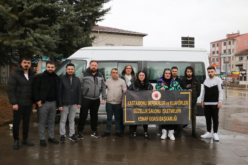 Kastamonu Berberler ve Kuaförler Odası üyesi 9 istekli berber ve kuaför depremzedelerin saç kısmı ve tıraş üzere ferdî bakım muhtaçlıklarını karşılamak için bir minibüsle bölgeye yanlışsız yola çıktı.