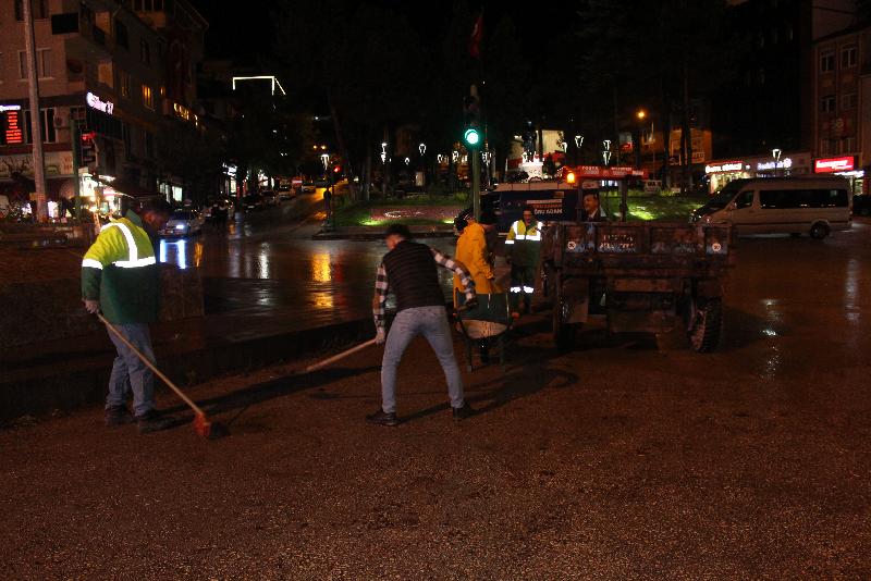 Kent merkezinde oluşan çamur da ekiplerce temizlendi.