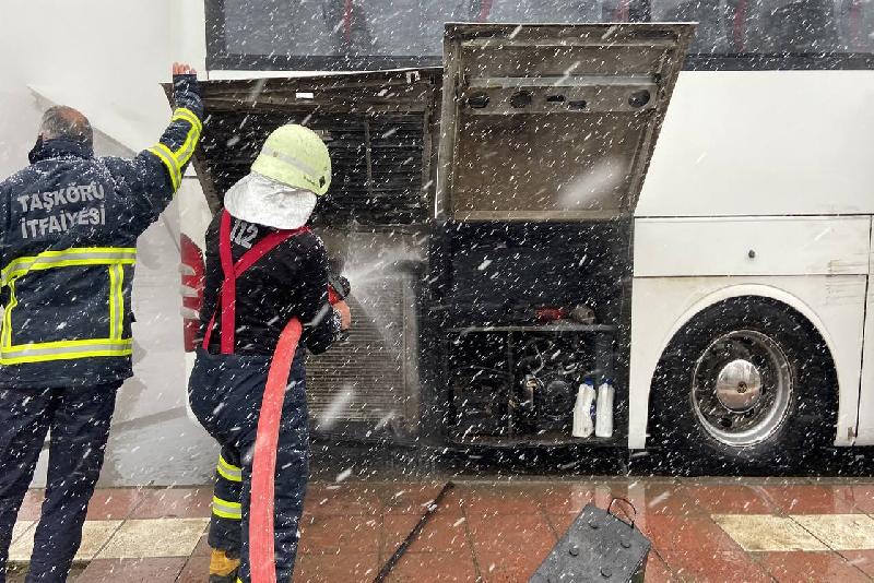 KASTAMONU – 67aydinhaber – Kastamonu'nun Taşköprü ilçesinde park halindeki bir yolcu otobüsünün motor kısmında çıkan yangın söndürüldü.