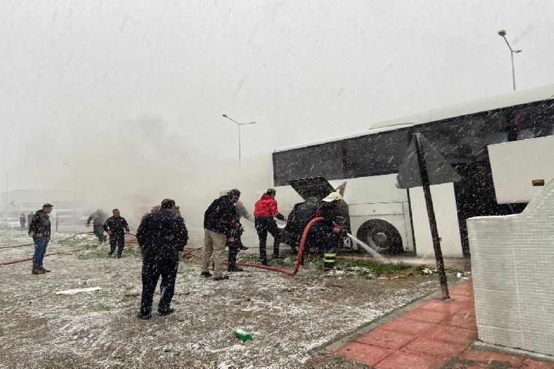 Cuma Pazarı mevkisine park halindeki 18 ABG 435 plakalı yolcu otobüsünün motor kısmında belirlenemeyen nedenle yangın çıktı.