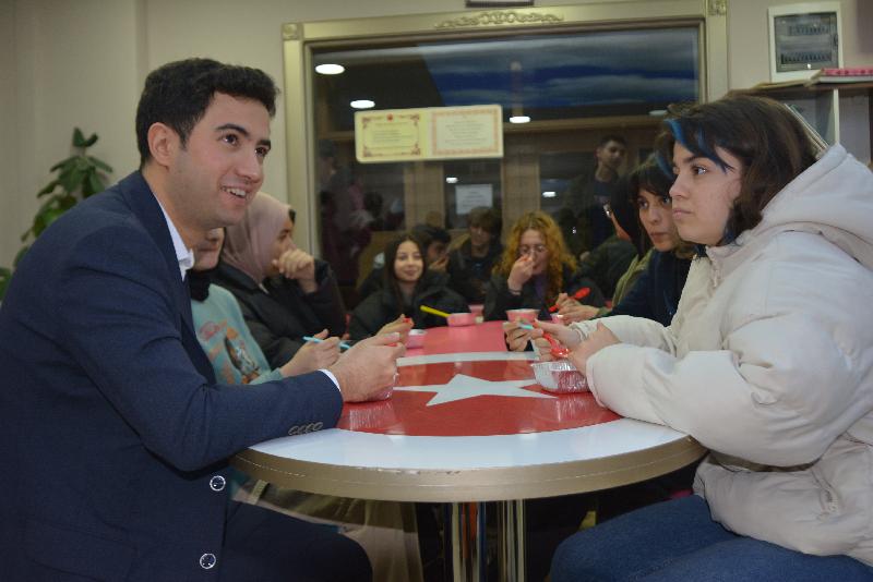 Kaymakam Muhammet Güzel'in isteği üzerine Şehit Ahmet Çamur Anadolu İmam Hatip Lisesinde eğitim gören depremzede öğrenciler için memleketlerinin yöresel dondurması yapıldı.