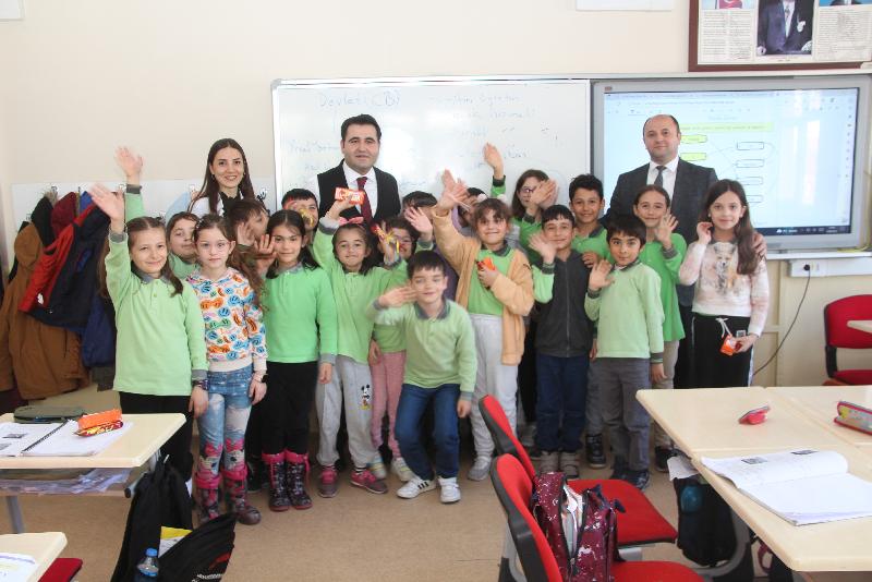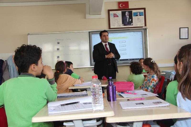 Okul öğretmenlerinden Nurtaş Gökrem’in daveti üzerine, Hayat Bilgisi dersine giren Gökcecik, üçüncü sınıf öğrencilerine ünite konusu ve Türkiye’de idare sistemi hakkında bilgi verdi.