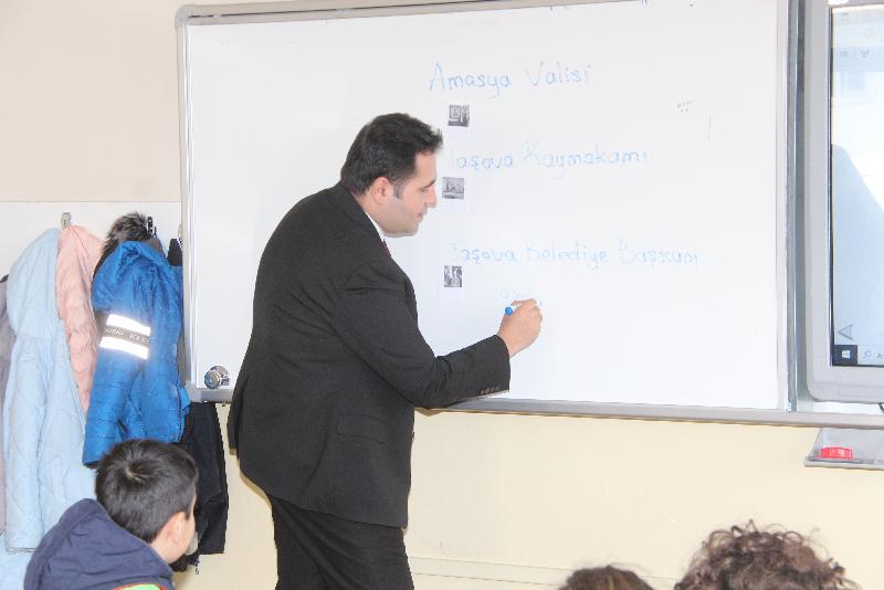 AMASYA – 67aydinhaber – Taşova Kaymakamı Ahmet Gökcecik, ilçede bulunan Yeşilırmak Şehit Ferhat Bolat İlkokulu'nda öğrencilerle ders işledi.