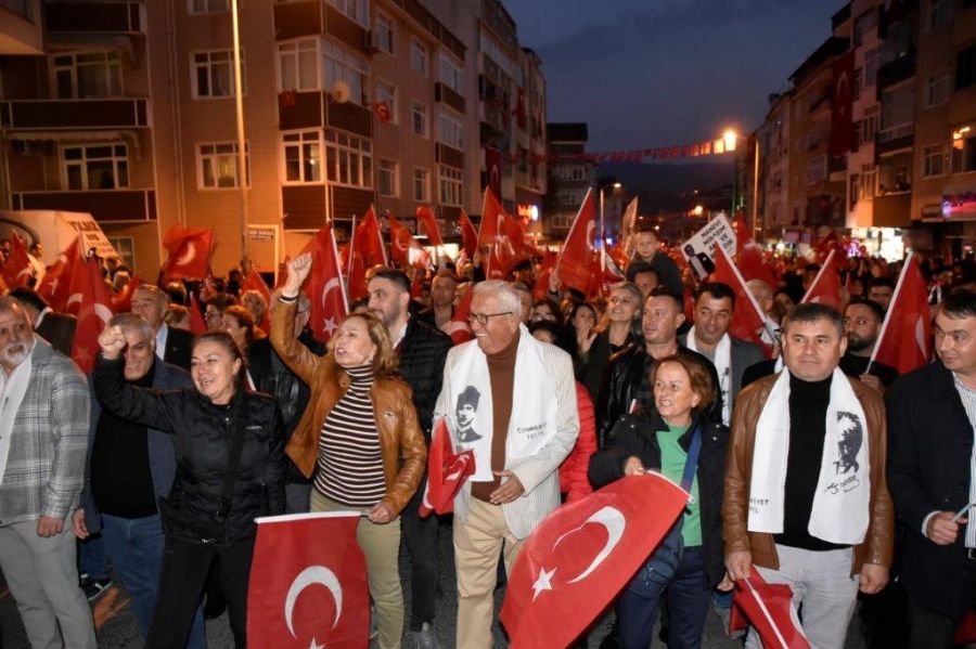 Türkiye Cumhuriyeti’nin kuruluşunun 101. Yılında Kdz. Ereğli Belediyesi tarafından düzenlenen fener alayına on binlerce vatandaş katıldı. Atatürk ve Cumhuriyet sevgisini hep bir ağızdan haykıran, omuz omuza Türk Bayrağını dalgalandıran halk, cumhuriyete sahip çıktı. Belediye Başkanı Halil Posbıyık, cumhuriyet için kenetlenen Kdz. Ereğli halkına teşekkür etti.