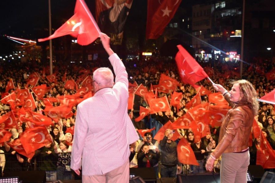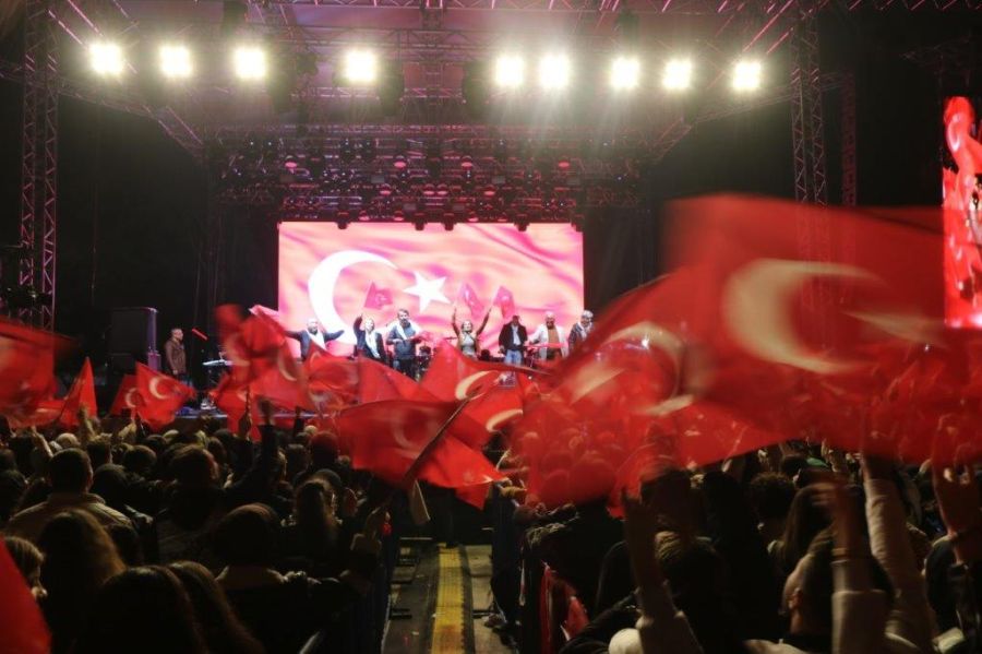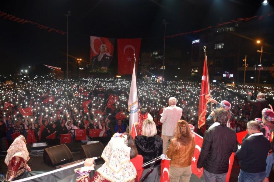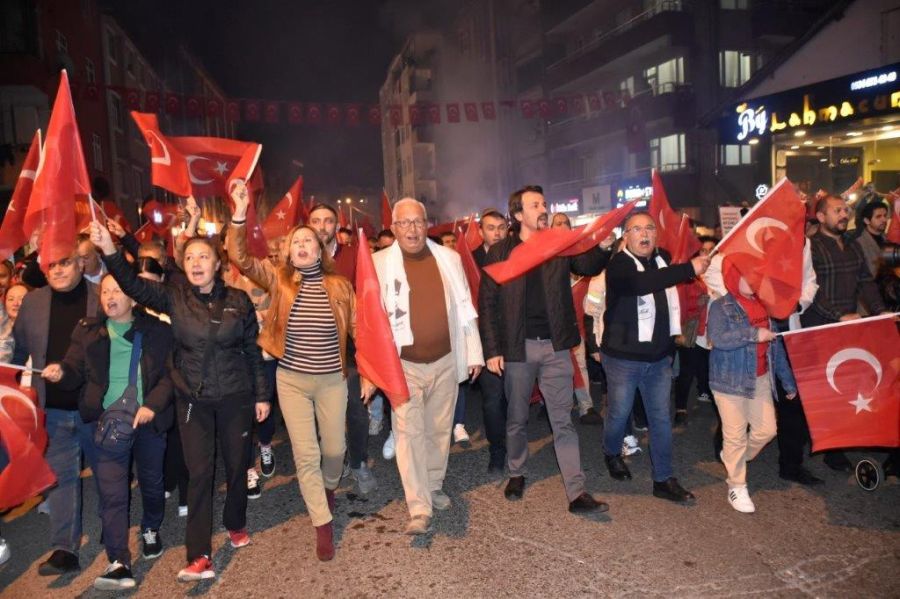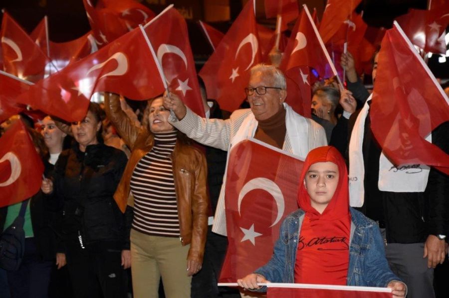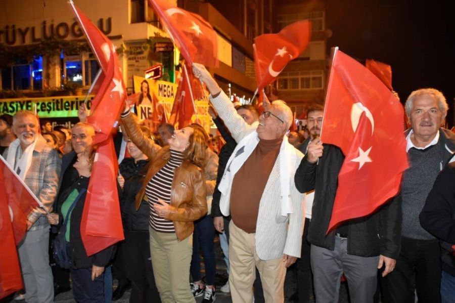 Atatürk ve Cumhuriyet sevgisini hep bir ağızdan haykıran, omuz omuza Türk Bayrağını dalgalandıran halk, sokakları insan seline döndürdü. Vatandaşlar, “Mustafa Kemal’in Askerleriyiz’ diye hep birden haykırdı.
