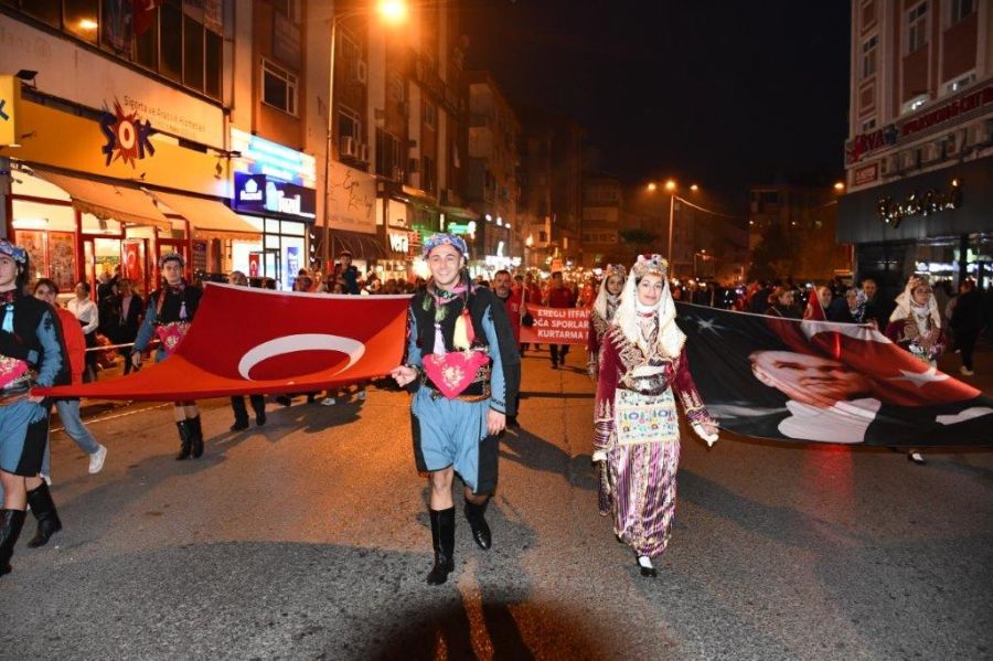 Kdz. Ereğli Belediyesi, Cumhuriyetin kuruluşunun 101. Yılında fener alayı düzenledi.