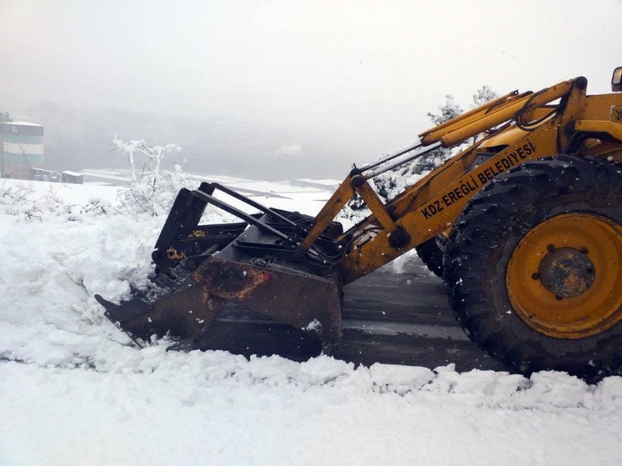 Kdz. Ereğli kent merkezinin özellikle yüksek rakımlı bölgelerinde dün geceden itibaren etkili olan kar yağışına karşı yollarda gerekli tedbirleri alan Kdz. Ereğli Belediyesi, kar temizleme çalışmalarını sürdürüyor.