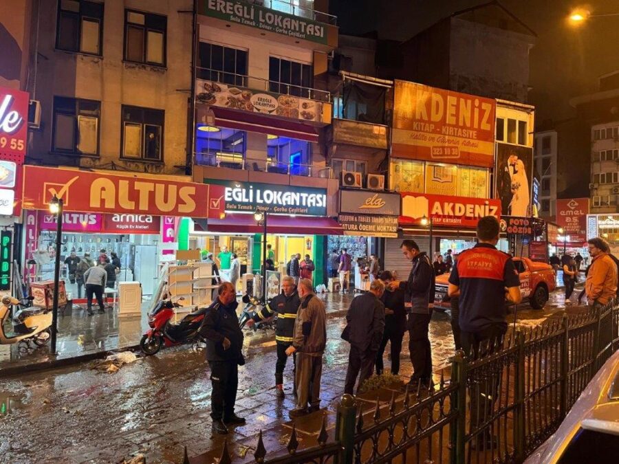 Aşırı fırtına ve yağış özellikle mazgalların tıkanması nedeniyle Un Pazarı’nda taşkına yol açtı. Un pazarı esnafının dükkanlarına su girdi.