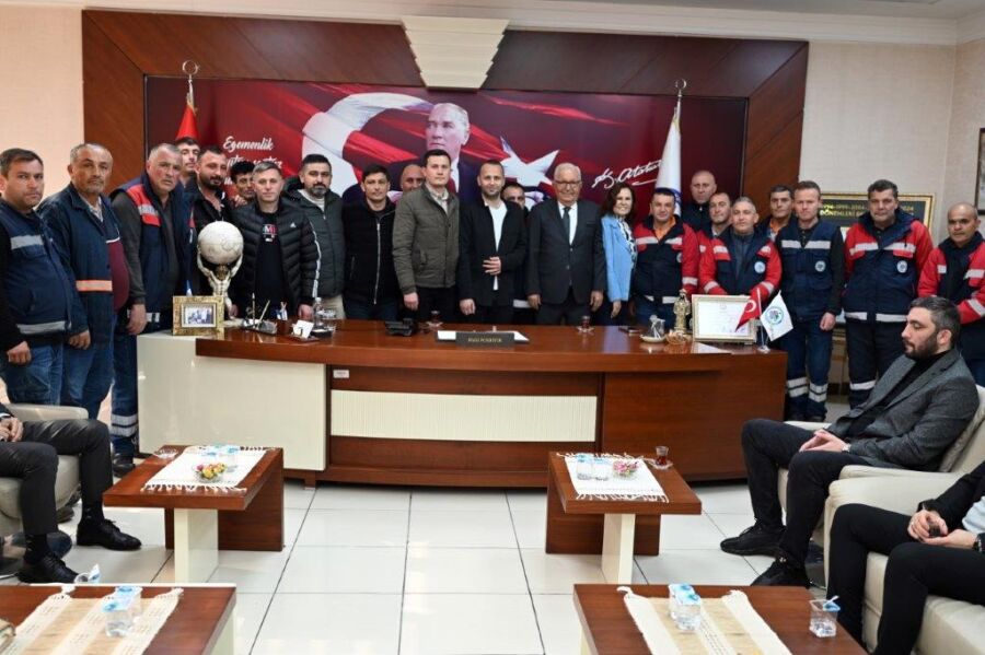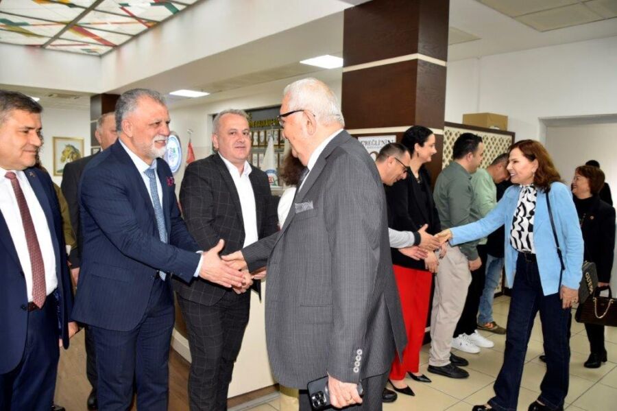 Kdz. Ereğli Belediyesi’nde geleneksel olarak düzenlenen bayramlaşma töreni Ramazan Bayramı’nın ilk günü Başkan Halil Posbıyık’ın makamında gerçekleşti.