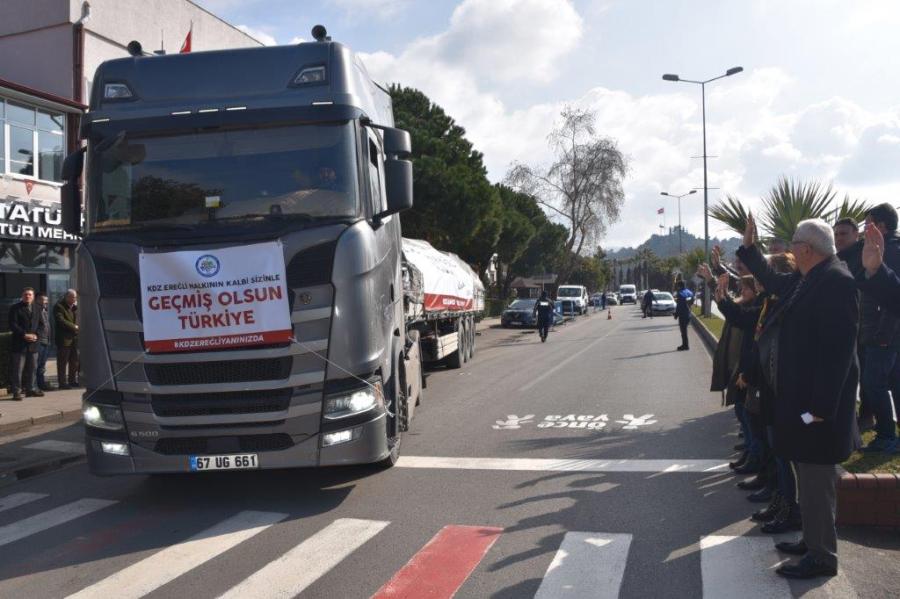 Kdz. Ereğli halkı, deprem bölgesindeki vatandaşlara ulaştırılmak üzere Kdz. Ereğli Belediyesi tarafından başlatılan yardım kampanyasına verdiği destek sonrası bugün 20 ton kömür ve odun yüklü 17’nci tır depremzedelere ulaştırılmak üzere Kahramanmaraş’a yola çıktı.