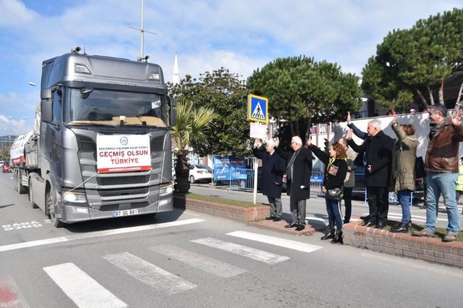Depremin ilk gününden itibaren AKM’de kurduğu Yardım Merkezi’yle kampanyayı bizzat koordine eden Belediye Başkanı Halil Posbıyık, eşi Neriman Posbıyık ve gönüllülerle birlikte 17. tırı bölgeye uğurladı.