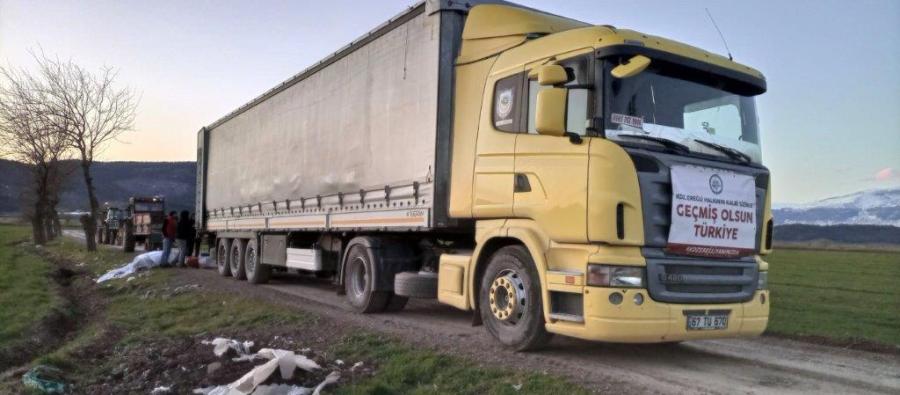 Ömer Demir şoförlüğündeki 2. Tırımız Kahramanmaraşın Şerefoğlu Köyü’ne yardımları ulaştırdı. Bu tırımız köye yakın bir noktaya kadar gitti ve oradan traktörlerle yardımlarınız köylere ulaştı.