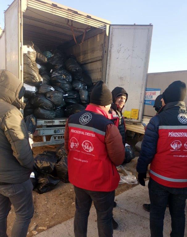 Yani ilk 4 tırdaki battaniye, mont, bere, çocuk eşyası, kadın eşyası ve gıdadan oluşan yardımlarımız ihtiyacı olanların eline ulaştı.