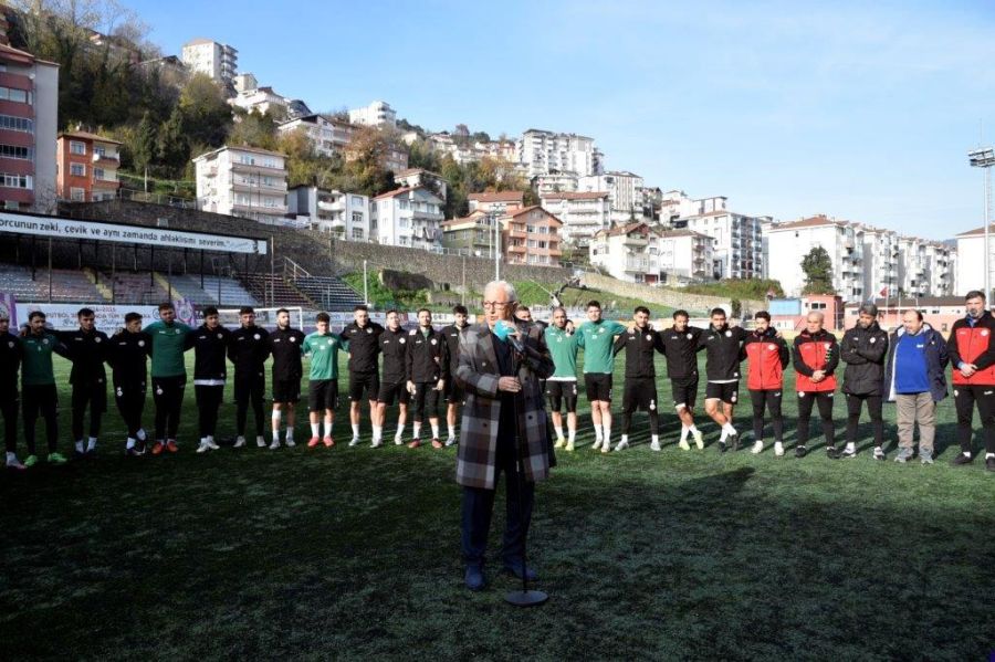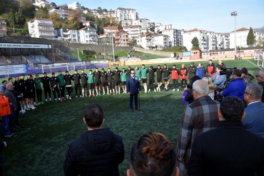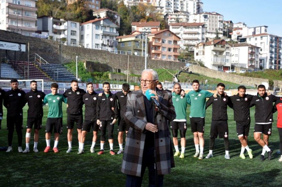 Çünkü: bütün Ereğli halkı birleşmiş vaziyette. Ereğli’de resmi konular falan konuşulmuyor. Ereğli Belediyesinden falan bahsedilmiyor, kaymakamlıktan bahsedilmiyor. Ereğli Belediyespor konuşuluyor her yerde. En küçüğünden en büyüğüne kadar. Bu ortamı getiren tabiki teknik heyetimiz ve siz değerli futbolcularımız. Özellikle yönetim kurulumuz. Akın katı ve ekibi büyük fedakarlıklar yaparak. Bu isler kolay olmuyor. Her fedakârlığı yapmaya devam edeceğiz. Bu birlik ve beraberliği götürmek zorundayız. Arkadaşlar; futbolcu konusunda sizler kadar bilgili değilim ama hepiniz bir yıldız gibi parlıyorsunuz. Takım olarak da marka olmaya başladınız. İnanılmaz sözler duyuyoruz. Bütün gözler sizde. Bu sizde ters etki de yaratıyor. Büyük bir baskı var üzerinizde. Bu seriyi kurtarmak için. Ben buradan yönetim kurulu üyelerimize ayrı ayrı şükranlarımı sunuyorum. Futbolcular, teknik heyet ve taraftarlarımıza ve yerel basınımıza yarı ayrı şükranlarımızı sunuyoruz.