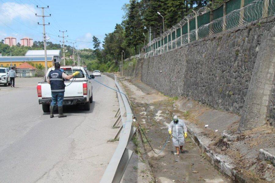 “Kdz. Ereğli Belediyesi Veteriner İşleri Müdürlüğü Vektör Kontrol ve İlaçlama Merkezi ekibi, sivrisinek üremesine neden olan dere yatakları gibi alanlarda larva etkili biyosidal ürünlerle ilaçlama yapmaya başladı. Çalışmalar yaz sezonu boyunca periyodik olarak devam edecek. Gerekli ilaçlamaların yanı sıra ekiplerimiz sivrisinek üremesine karşı gerekli ilaçlamayı yapacak, vatandaşlarımızın bahçelerinde ve çevresinde sivrisinek üremesine neden olacak bidon, varil, tank ve eski araçlar depoda bekletilecek. Malzemelerin ortamdan uzaklaştırılması veya üstlerinin örtülmesi sivrisinek popülasyonunun kontrol altına alınmasına yardımcı olacaktır denildi.