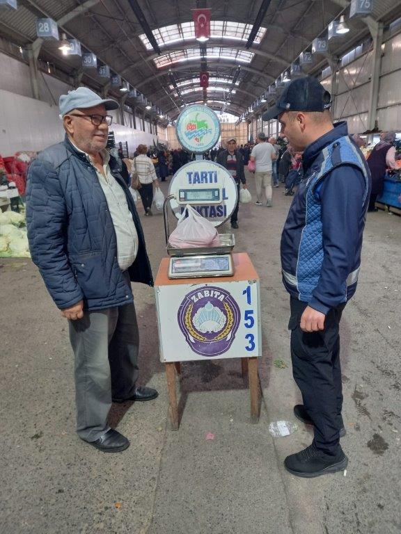 Kdz. Ereğli Belediyesi Zabıta Müdürlüğü ekipleri, pazaryerinde vatandaşların alışverişlerini güven içinde yapabilmesi için denetimlerini sürdürüyor. Ekipler, hem pazarcı esnafının fiyat ve etiket kurallarına uyup uymadığını kontrol ediyor hem de vatandaşların poşetlerine koyulan ürünleri tartarak olası hileli satışların önüne geçiyor.