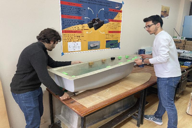 KTÜ Makine Mühendisliği Kısmı son sınıf öğrencisi Abdullah Ökmen'in yürütücülüğünde “Otonom İnsansız Su Üstü Aracı Kullanılarak Sucul Ekosistemleri Etkileyen Faktörlerin Ölçülmesi ve İzlenmesi” isimli proje hazırlandı.