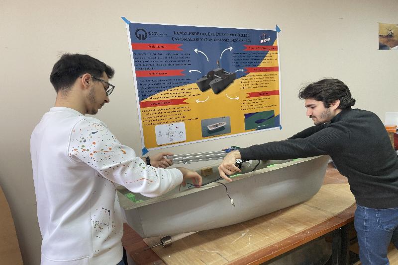 – KTÜ Makine Mühendisliği son sınıf öğrencisi Abdullah Ökmen’in geliştirdiği insansız deniz aracı, denizlerde ölçüm, izleme ve müşahede çalışmaları yapabilecek