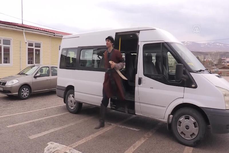 Eski devirlere ilişkin kostüm giyen liseliler, öğretmenleri nezaretinde köylerdeki ilkokul ve ortaokul öğrencileri için oyunlar sahneliyor.