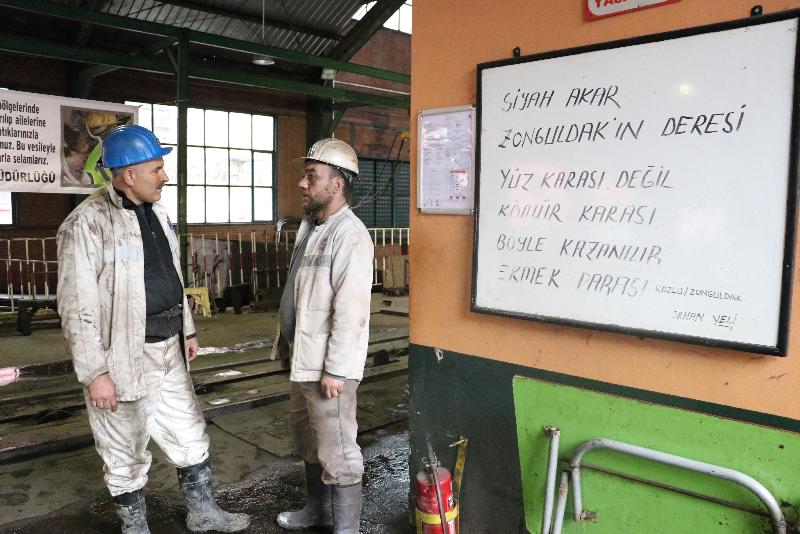 Madenciliğin sıkıntı bir meslek olduğuna işaret eden Karapınar, “Deprem bölgesinde yaptıklarımızın fazlasını yer altında yapıyoruz. Biz de işe gidene 'Hayırlı işler.', işten çıkana 'Geçmiş olsun.' denir. Yer altında çalışmak herkesin harcı değil. Zelzele bölgesinde yaptıklarımız bizi yormaz.” dedi.