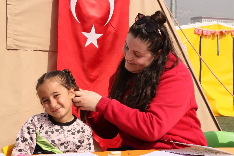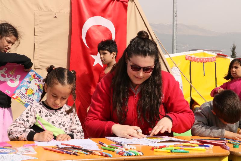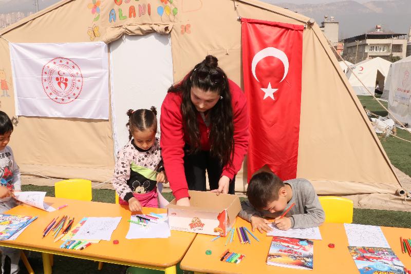 – Zonguldak’tan zelzele bölgesine gelerek arama kurtarma çalışmalarına katılan madenci babasından etkilenen Gençlik Merkezi gönüllüsü Elif Yaşar Birol, yaraların sarılmasına katkı sağlamak için çocuklara yönelik etkinlikler düzenliyor