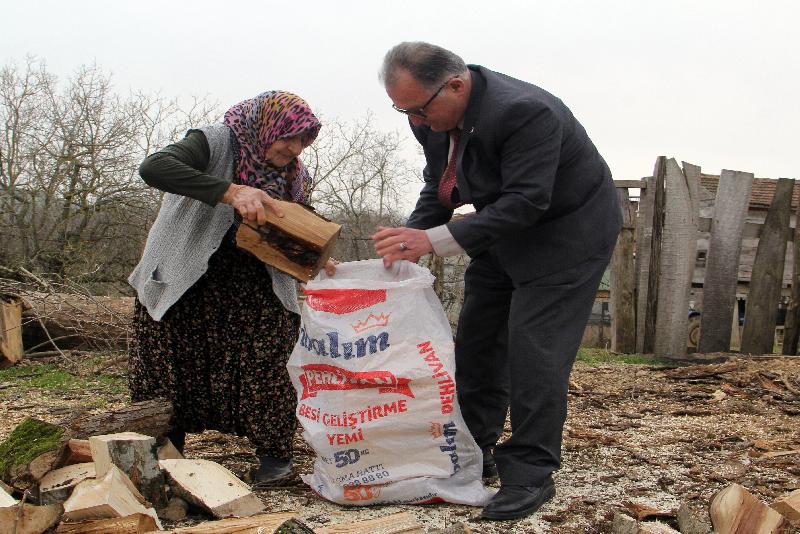 – Sinop’ta yaşayan 85 yaşındaki Makbule Can, ilerlemiş yaşına karşın köydeki komşularıyla depremzedelere gönderilecek odunların çuvallara doldurulmasına yardım ediyor