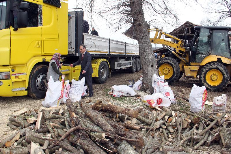 Merkez ilçeye bağlı Fidanlık köyünde yaşayan Makbule Can ve ailesi de kendilerine ilişkin yerden yaptıkları ağaç kesitlerinden elde ettikleri 50 ton odunu zelzele bölgesine gönderdi.