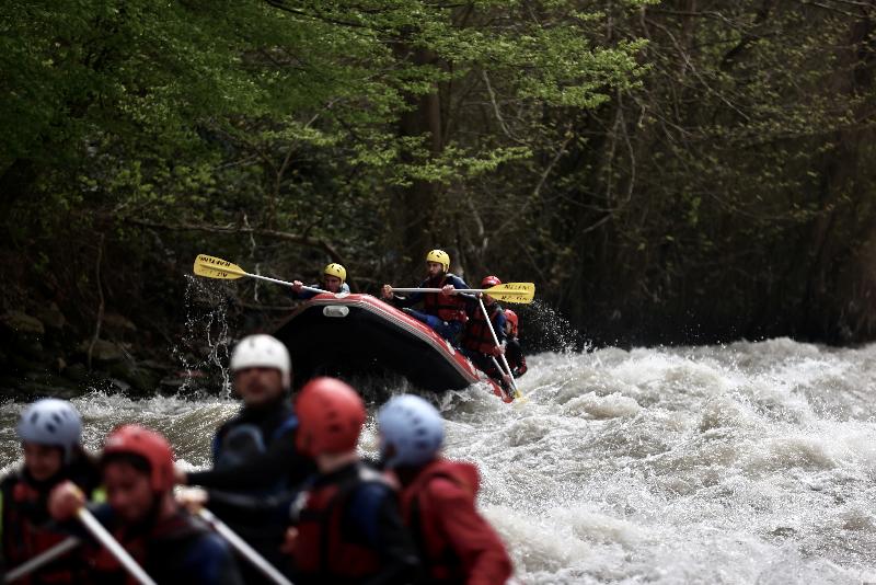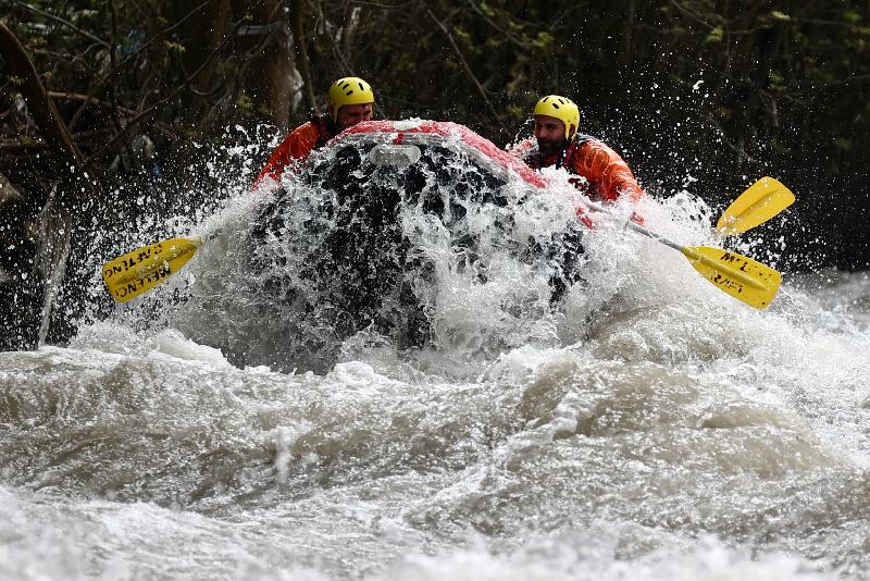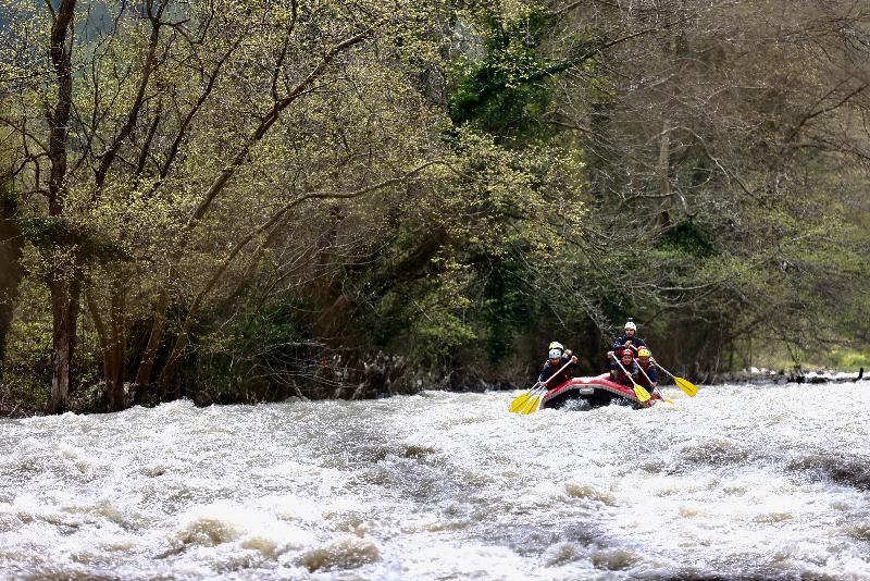 Dokuzdeğirmen mevkisine gelen adrenalin tutkunları, botlarını suya indirdi. Tabiat içinde, debisi yüksek suda ilerleyen raftingseverler, 15 kilometrelik parkurda heyecanlı anlar yaşadı.