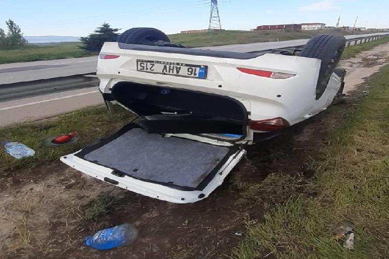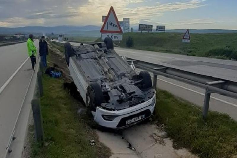 Ceren Ş. (28) idaresindeki 16 AHV 215 plakalı otomobil, Merzifon-Samsun kara yolu Çavundur köyü kavşağında bariyere çarptıktan sonra devrildi.