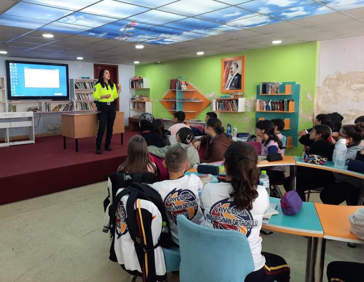 01.11.2023 Salı günü, 10.30-11.30 saatleri arasında Çaycuma Mimar Sinan Ortaokulu’nda 2 öğretmen ve 65 öğrenciye Trafik eğitimi verilmiştir.