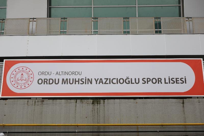 Ekiplerce okulun duvarına “Ordu Muhsin Yazıcıoğlu Spor Lisesi” tabelası asıldı.