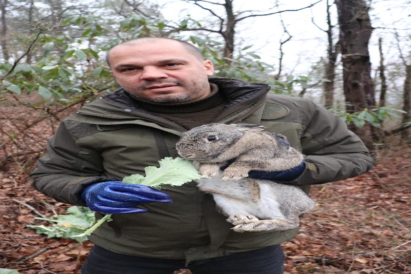 Beslenen yaban tavşanı, Ünye Asarkaya Kent Ormanı'nda doğal ömür alanına bırakıldı.