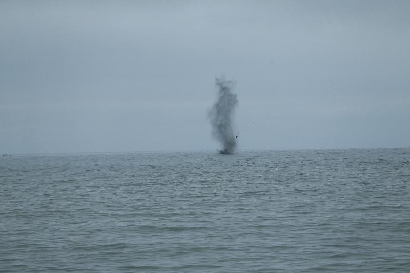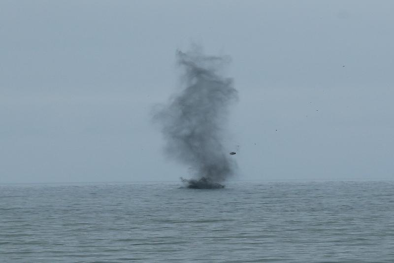İstanbul'dan gelen uzman takımlarca, Kıyı Güvenlik botunun halatı yardımıyla tekrar denizin içerisine çekilen cisim fünye ile patlatılarak imha edildi.