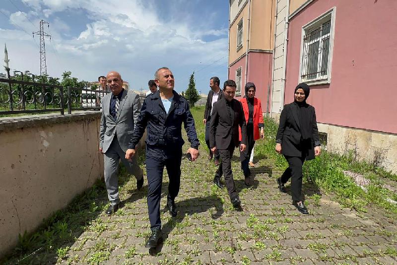 Vali Tuncay Sonel, inşaat çalışmaları süresince huzurevi sakinlerinden bazılarının kalacağı Şirinevler Mahallesi'ndeki geçici binada incelemelerde bulundu.
