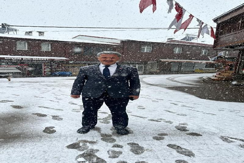 Kabadüz Belediye Başkanı Yener Kaya da Çambaşı Yaylası'ndaki esnafa yaptığı ziyaret sırasında kar yağışını bir süre izledi.