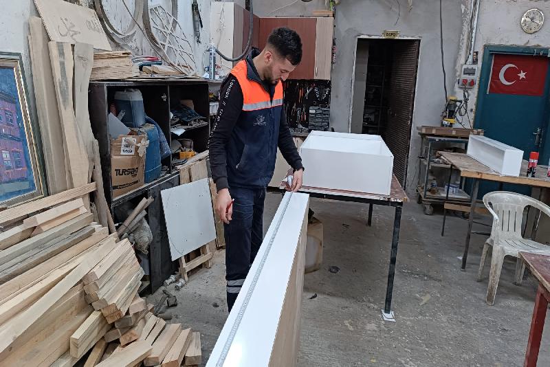 Belediyeden yapılan açıklamada, belediyenin tüm ahşapla ilgili gereksinimlerini karşılayan atölyenin üretime devam ettiği belirtildi.