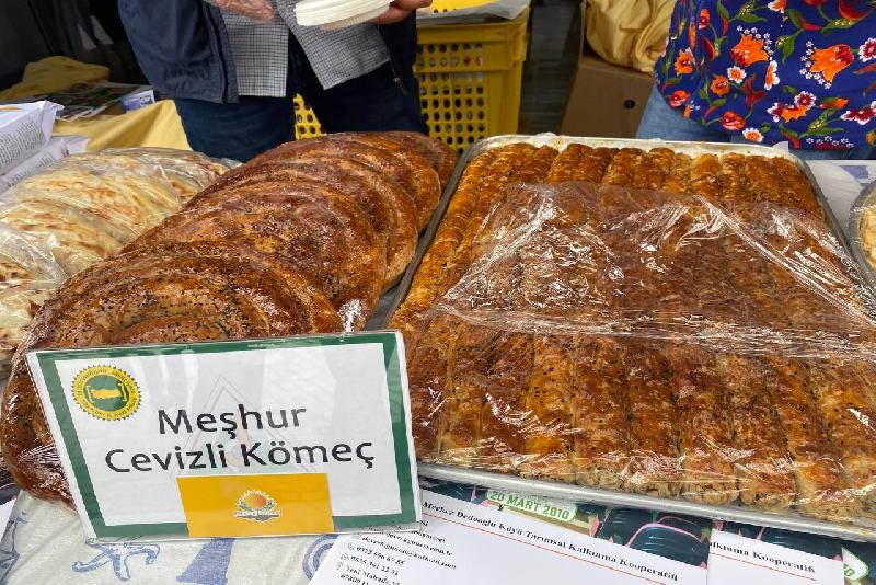 Yöresel ürünlerin ve el sanatlarının sergilendiği organizasyonda, vatandaşlara kentin coğrafi işaret belgeli dartılı keşkek ve kabak tatlısı ile yöresel lezzetlerinden Boşnak böreği ikram edildi.