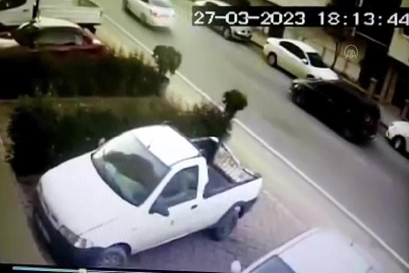 Kaza ve motosiklet şoförünün sürüklendiği anlar, bir iş yerinin güvenlik kamerası kayıtlarına yansıdı.