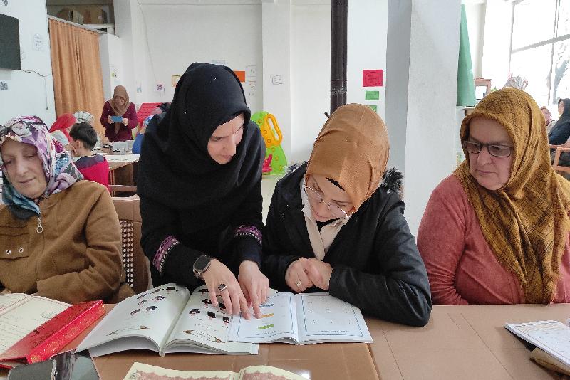 SAMSUN (AA) – Samsun'un Salıpazarı ilçesinde Halk Eğitim Merkezi tarafından açılan kursta işitme engelli kadınlara işaret diliyle Kur'an-ı Kerim öğretiliyor.
