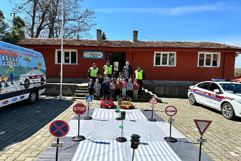 İl Jandarma Komutanlığı trafik timleri, kırsaldaki 28 okulda 2 bin 129 öğrenciye trafik kurallarının önemi, trafik işaret levhalarının anlamları, yaya ve sürücülerin uyması gerekenler ile okul taşıtında uyulması gereken kurallar hakkında bilgi verdi.