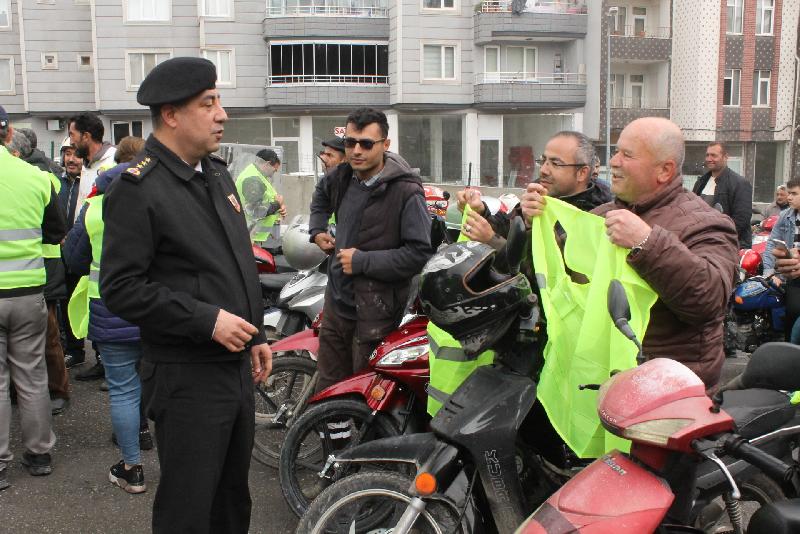 SAMSUN – Samsun İl Jandarma Komutanlığınca, kırsalda bulunan 263 bisiklet ve motosiklet sürücüsüne reflektif yelek dağıtıldı.